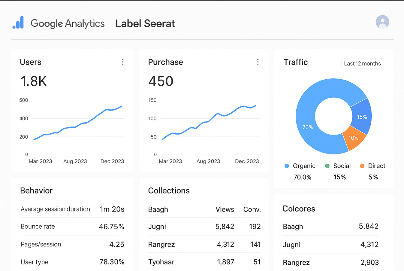 ->Inconsistent Brand Presentation: Without a website, Label Seerat couldn’t properly showcase their collections, tell their brand story, or create trust through a professional online experience.